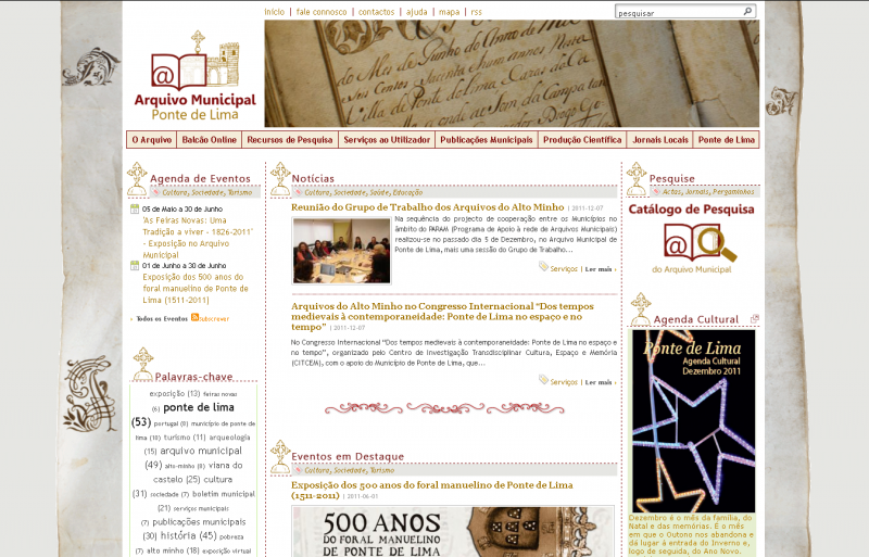 O Município de Ponte de Lima lançou o novo website do Arquivo Municipal, o qual se assume como uma ferramenta de primordial importância para a divulgação de todas as atividades deste importante centro de informação, cujas competências, além da gestão integrada da informação produzida/recebida pelos órgãos e serviços do Município, independentemente da data, forma e suporte material, assenta na defesa e salvaguarda dos arquivos, coleções e mais documentos com valor histórico e patrimonial do Município e de outras entidades, pessoas ou serviços existentes no concelho.