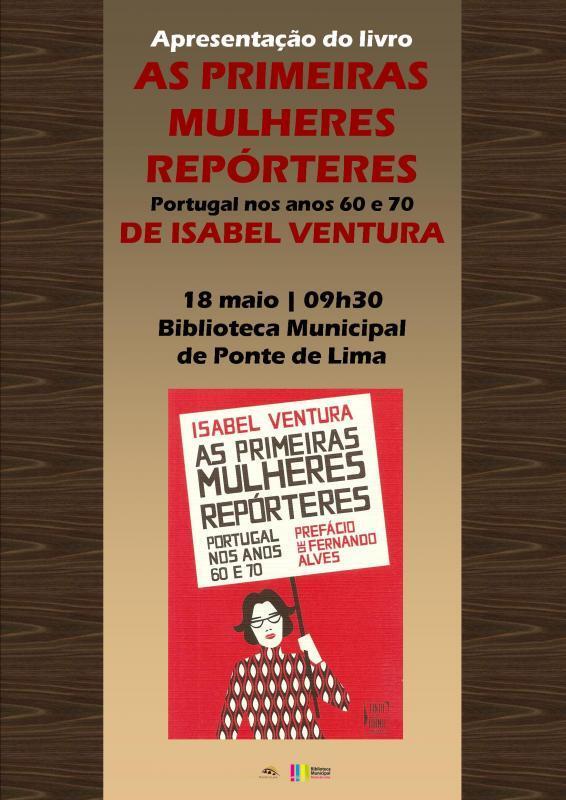 A jornalista e investigadora Isabel Ventura apresenta a obra 'As primeiras mulheres repórteres: Portugal nos anos 60 e 70', no próximo dia 18 de maio, pelas 09h30, no Auditório da Biblioteca Municipal de Ponte de Lima. O livro, que decorre da tese de Mestrado da autora em Estudos sobre as Mulheres, pretende dar a conhecer o percurso de seis jornalistas que iniciaram a sua atividade profissional na imprensa escrita no início da década de 60 do século passado, em pleno Estado Novo. São elas Maria Antónia Palla (1933-) - mãe de António Costa e feminista emblemática - Diana Andringa (1947-) - jornalista detida pela PIDE por defender a independência de Angola - Maria Teresa Horta (1937-) - escritora visada na exposição Oito mulheres, oito autoras, patente na Biblioteca Municipal de Ponte de Lima, jornalista e uma das protagonistas do célebre caso das Três-Marias - Edite Soeiro (1934-2009) - uma das primeiras mulheres a ocupar cargos de chefia no jornalismo num período em que essa posição era maioritária e tradicionalmente masculina - Leonor Pinhão (1957-) - jornalista desportiva e coautora do roteiro do filme Um adeus português, do marido e realizador João Botelho - e, finalmente, Alice Vieira (1943-) - jornalista e escritora de renome que experimentou a repressão policial nas lutas estudantis e os cortes da censura no Juvenil, onde trabalhou sem remuneração.