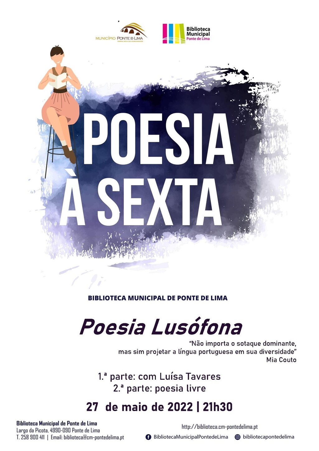 Ponte de Lima abraça mais uma edição da “Poesia à Sexta” e vai projetar a língua portuguesa através de uma sessão dedicada aos poetas lusófonos, que terá lugar no dia 27 de maio, pelas 21h30, na Biblioteca Municipal.