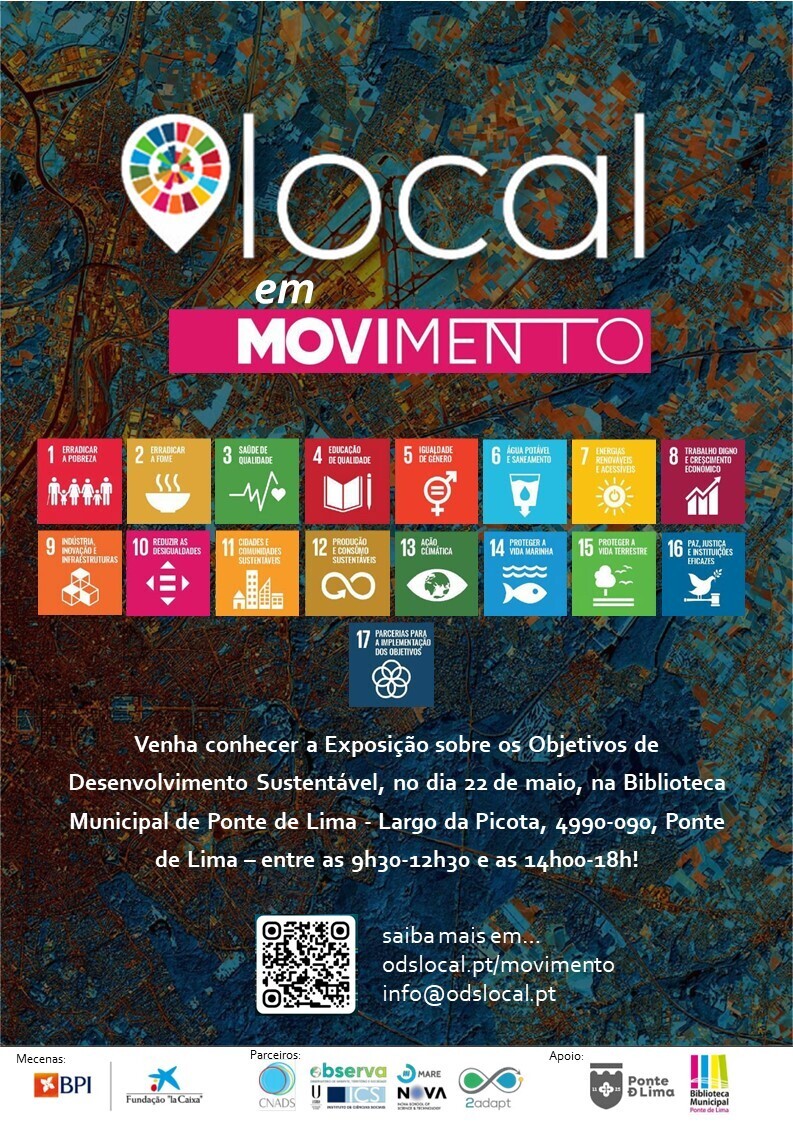 No âmbito das atividades da Plataforma ODSlocal (odslocal.pt) foi desenvolvida uma exposição itinerante “ODS em movimento” sobre a Plataforma ODSlocal e os Objetivos de Desenvolvimento Sustentável, que o Município de Ponte de Lima vai acolher e disponibilizar a todo o público, durante o dia 22 de maio, na Biblioteca Municipal.
