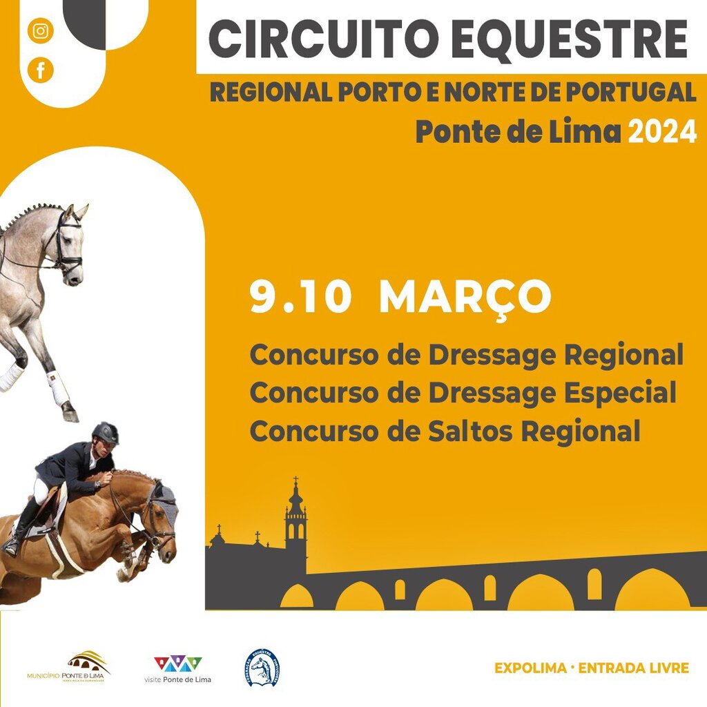 Integrado no Circuito Equestre Regional Porto e Norte de Portugal, realiza-se em Ponte de Lima, no fim de semana de 9 e 10 de março o Concurso de Dressage Regional, Concurso Dressage Especial e o Concurso de Saltos Regional.