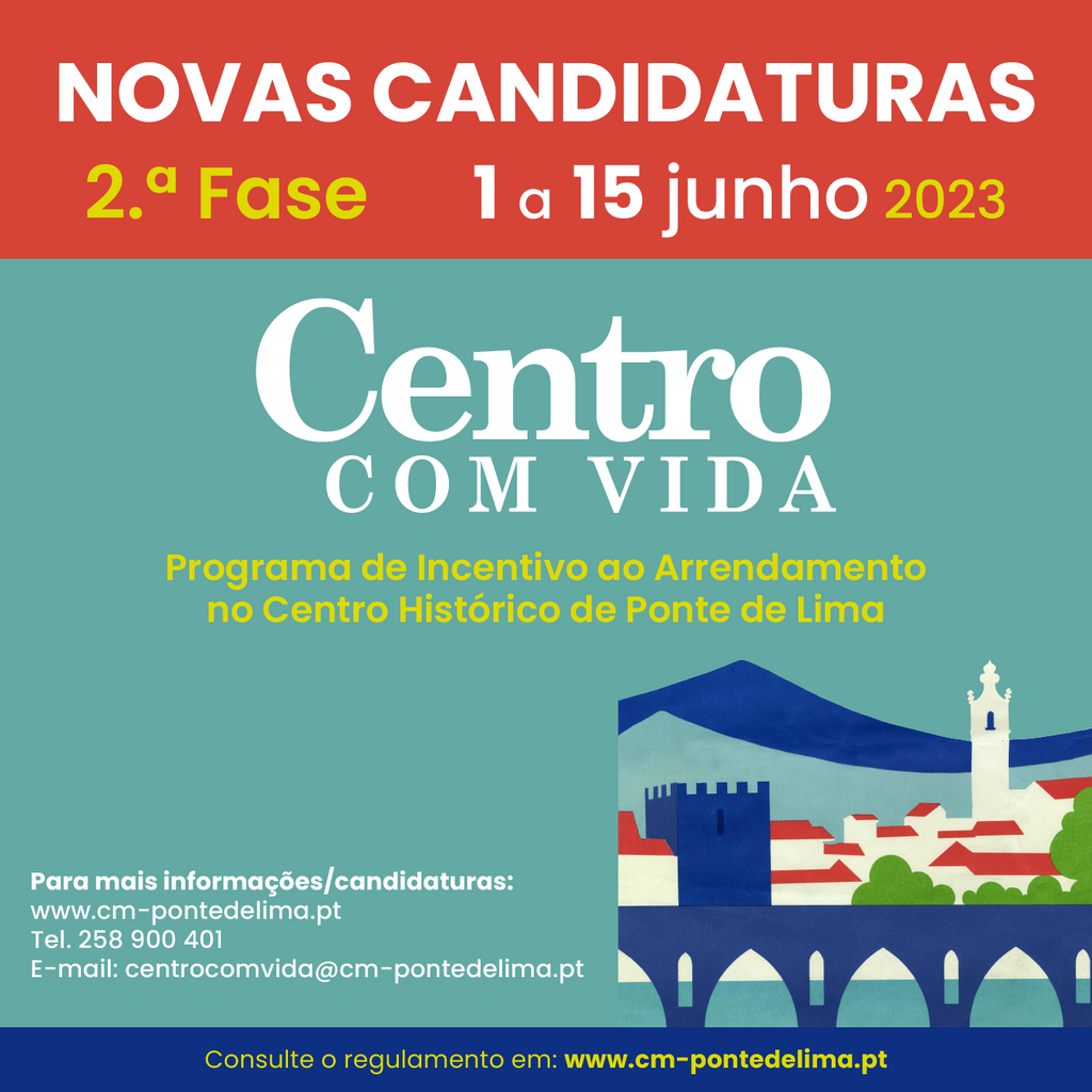 - Ponte de Lima Promove Incentivo ao Arrendamento no Centro Histórico Centro Com Vida – 2 ª Fase - candidaturas até 15 de junho