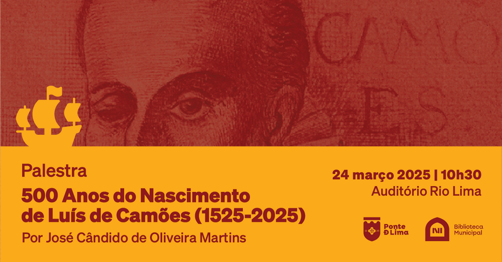 O Município de Ponte de Lima vai promover a palestra "500 anos do nascimento de Luís de Camões (1525-2025)", destinada ao público escolar, no dia 24 de março, às 10h30, para recordar e celebrar a vida e obra do maior poeta da literatura portuguesa.