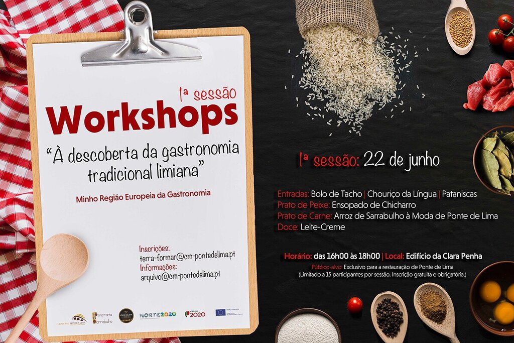 O Município de Ponte de Lima, em parceria com a Confraria do Arroz de Sarrabulho à Moda de Ponte de Lima, promove a realização de quatro workshops "À descoberta da gastronomia tradicional limiana" com o Chef Marco Gomes.