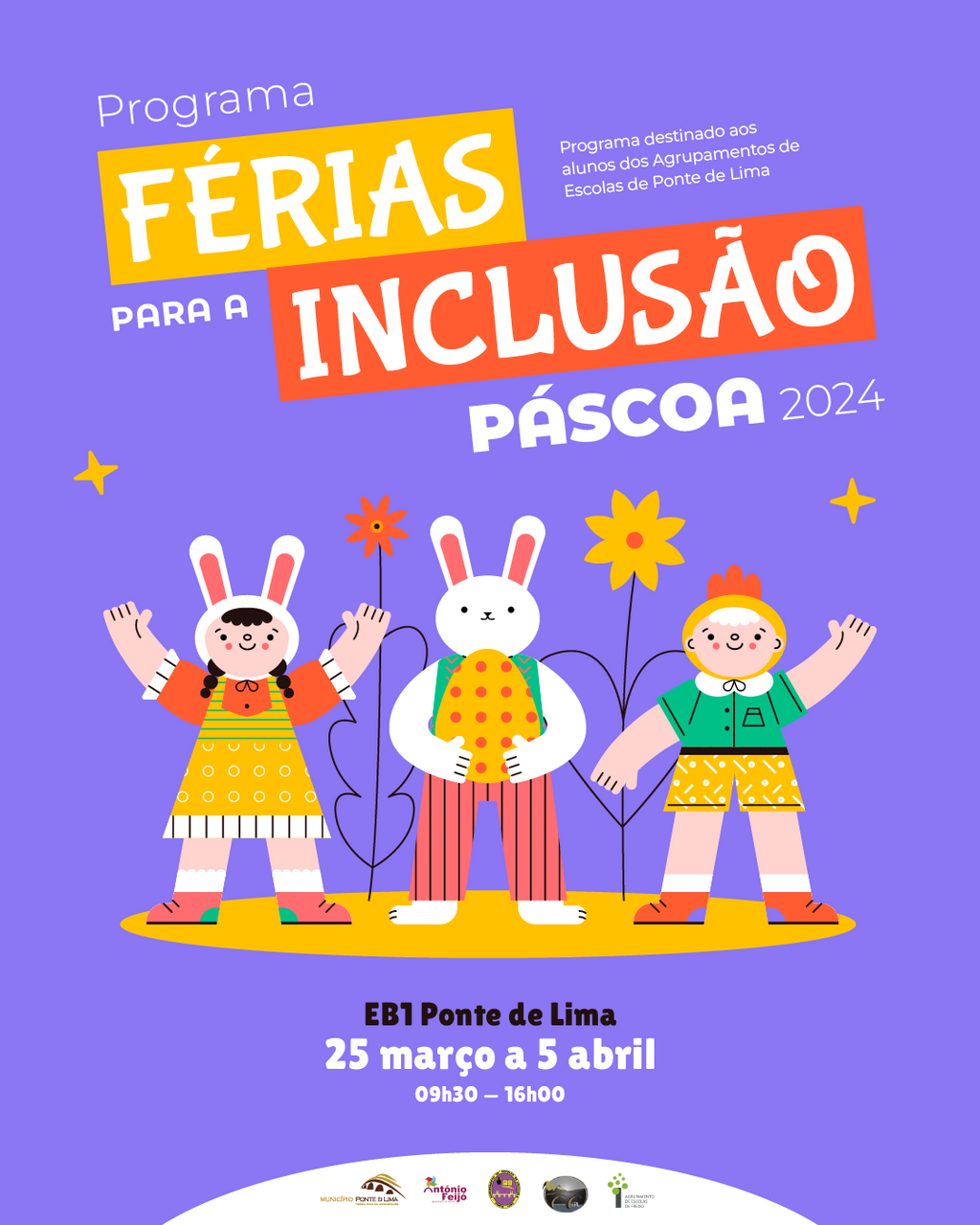 O Município de Ponte de Lima, em parceria com os Agrupamentos de Escolas de Ponte de Lima, e a Associação Cais do Lethes, promove mais uma edição do Programa de Férias para a Inclusão – Páscoa 2024