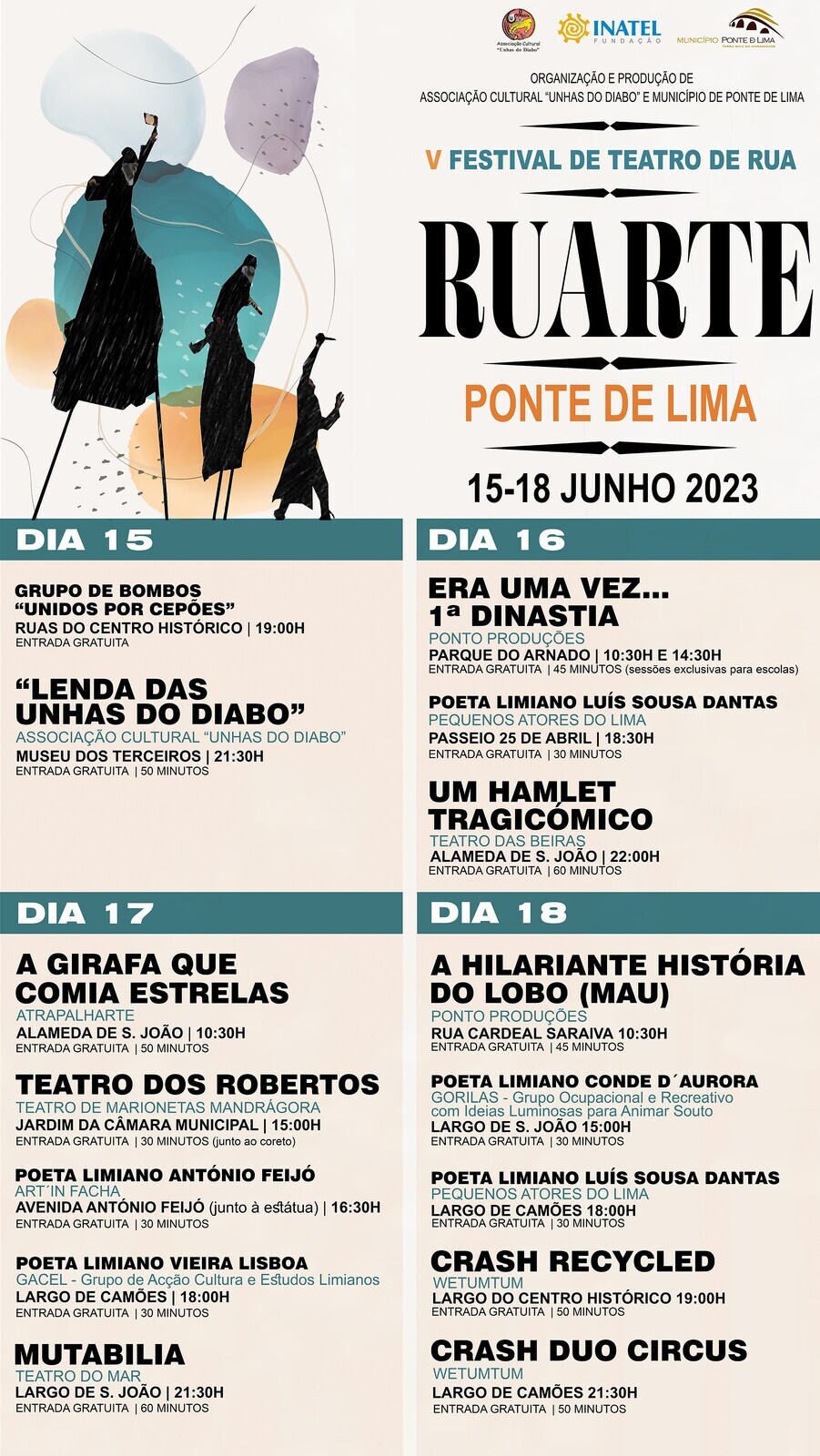 - RUARTE – Festival de Teatro de Rua de Ponte de Lima – 15, 16, 17 e 18 de junho