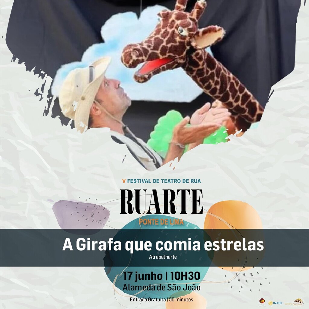O terceiro dia do RUARTE – Festival de Teatro de Rua de Ponte de Lima, uma organização do Município de Ponte de Lima e da Associação Cultural “Unhas do Diabo”, inicia pelas 10.30 horas, com o espetáculo “A Girafa que comia estrelas”, pelos Atrapalharte, na Alameda de São João. Esta história é um excelente ponto de partida para explicar aos mais pequenos a questão das alterações climáticas e a importância da responsabilidade e consciencialização ambiental.