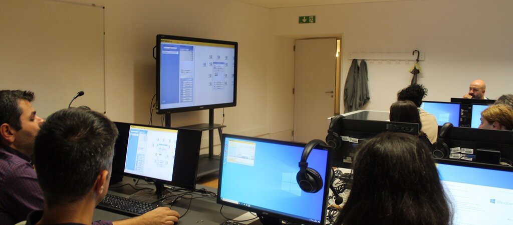 No passado dia 16 de outubro iniciou-se um conjunto de sessões previstas num total de 24h de capacitação para professores, com a duração de 3 horas cada, com professor especialista para explicar o programa Sanako e assim termos a sala operacional.