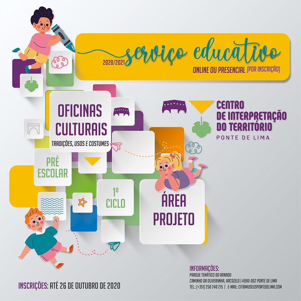 Novos tempos acarretam novos desafios e, consequentemente, a reinvenção das formas de viver e de divulgar a cultura e o património. Nesse sentido, o Serviço Educativo do Centro de Interpretação do Território (CIT) – espaço cultural afeto ao Município de Ponte de Lima e baluarte do património imaterial do concelho –, no cumprimento da sua missão de defesa e promoção da história local, propõe para o ano letivo de 2020/2021 a dinamização de Oficinas Culturais – dedicadas aos usos e costumes da região – e da Área Projeto | "P’ra que vivam as tradições!" – inspirada em algumas das práticas seculares mais emblemáticas do concelho ponte-limense que ainda hoje fazem parte da realidade do nosso território e que correm o risco de desaparecer.