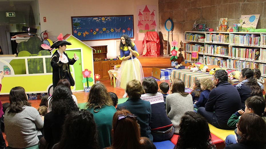 A sala infantojuvenil transformou-se num cenário encantado onde figuraram várias personagens da história: a Branca de Neve, a Bruxa, a Rainha Má, o caçador, o príncipe e os sete anões, que foram protagonistas ativos numa mágica manhã de sábado.