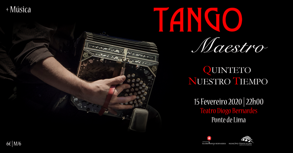 Amanhã, sábado, 15 de fevereiro, às 22h00, no Teatro Diogo Bernardes, em Ponte de Lima, concerto pela formação internacional Quinteto Nuestro Tiempo, composta por músicos residentes em Berlim, Paris, Madrid e Corunha, que apresentará Tango Maestro, um concerto instrumental de homenagem à figura do compositor Astor Piazzolla.