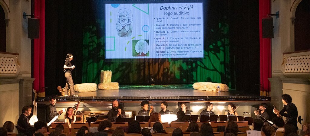 Com lotação esgotada, o Teatro Diogo Bernardes apresentou no sábado, 14 de outubro para o público em geral um espetáculo de ópera, arte com admiradores em todo o mundo, a coprodução "Daphnis et Églé": ópera barroca, escrita em 1753 por Jean-Philippe Rameau.