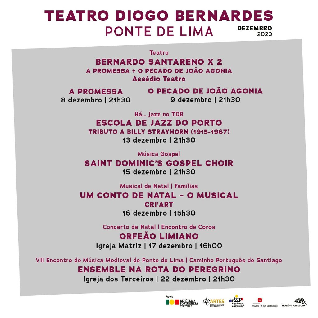 No mês de dezembro, o Município de Ponte de Lima e o Teatro Diogo Bernardes apresentam um amplo conjunto de espetáculos nas mais diversas áreas, onde a música e o teatro assumem um papel de destaque marcados maioritariamente pela época natalícia.