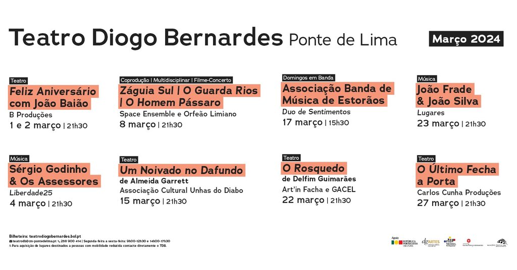 - Teatro Diogo Bernardes – Programação de março 2024