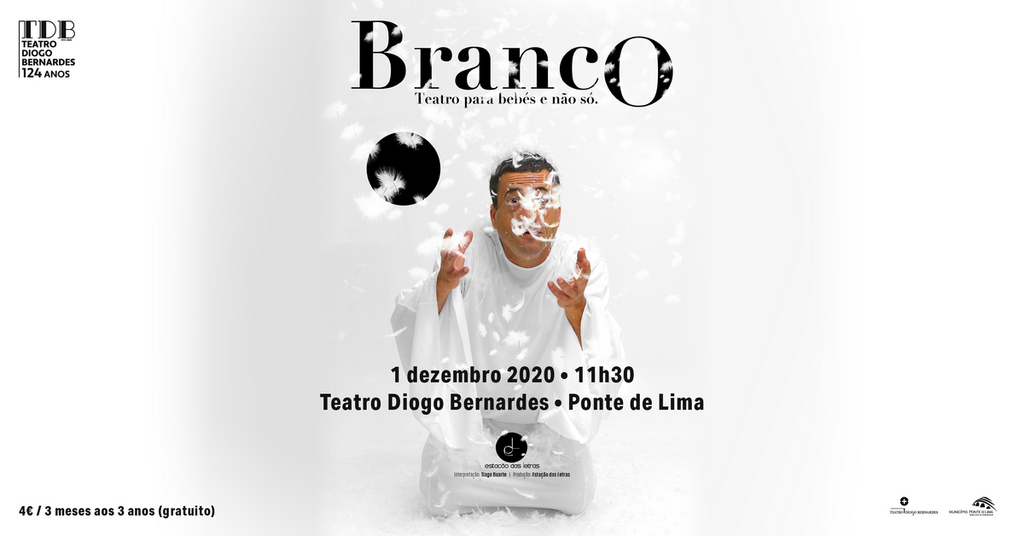 A 1 de Dezembro, às 11h30, no Teatro Diogo Bernardes, em Ponte de Lima, teatro para bebés, com o espectáculo Branco – Teatro para Bebés e Não Só, pela Estação das Letras.