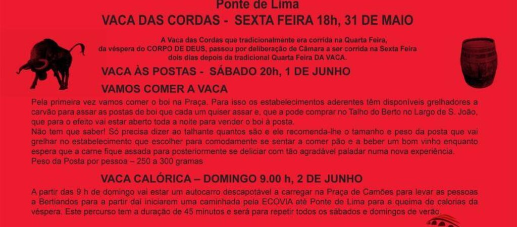 - Vaca das Cordas em Ponte de Lima dia 31 de maio às 18 horas