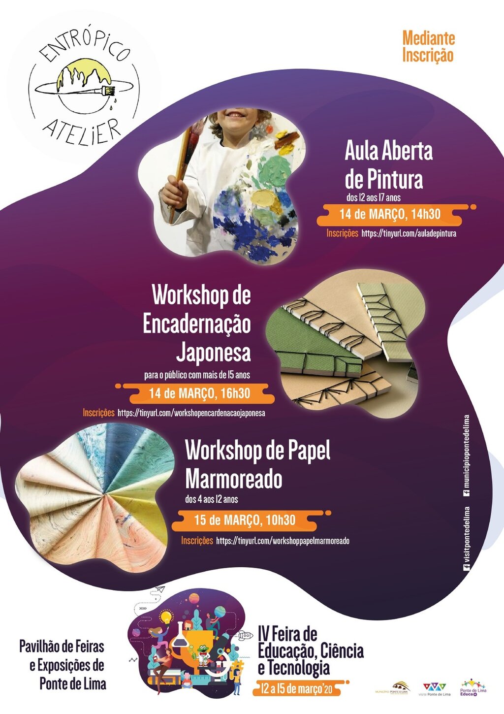 Inserido no programa da “IV Feira da Educação, Ciência e Tecnologia”, que se realiza entre os dias 12 e 15 de março, o Município de Ponte de Lima em parceria com o Atelier Entrópico irá dinamizar um conjunto de workshops em que se pretende oferecer aos participantes a oportunidade de desenvolverem trabalhos de natureza artística e criativa.