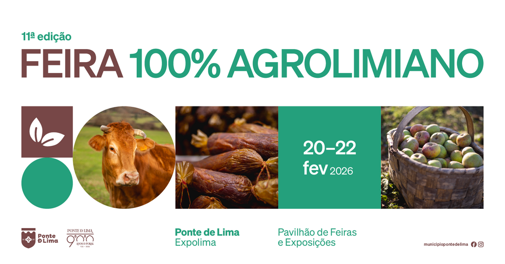 O Município de Ponte de Lima promove, de 20 a 22 de fevereiro de 2026, no Pavilhão de Feiras e Exposições, a 11.ª edição da Feira 100% Agrolimiano – um evento de referência inteiramente dedicado à valorização e promoção da produção agroalimentar do concelho.