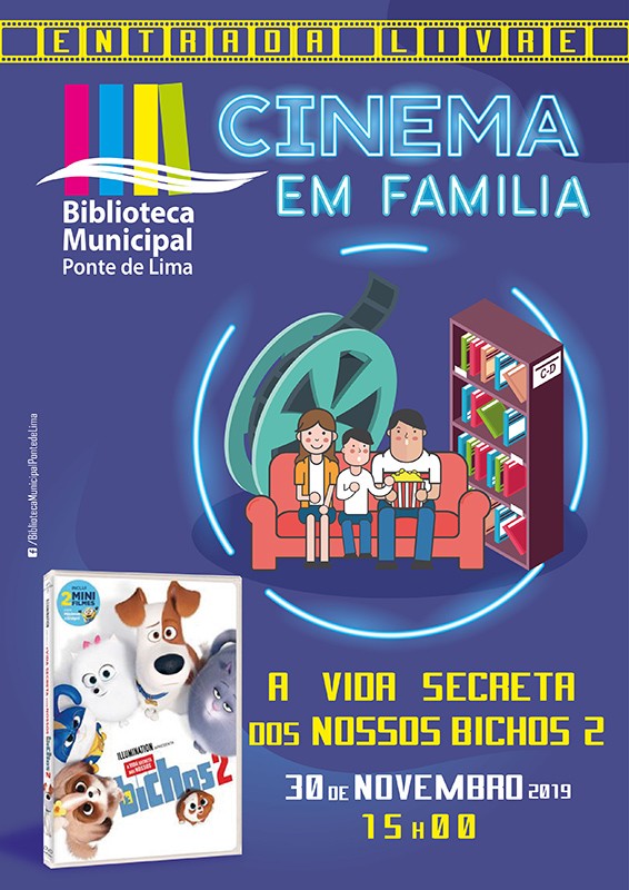 A próxima edição do Cinema em Família – rubrica dinamizada pelo Município de Ponte de Lima, através da Biblioteca Municipal - está agendada para o dia 30 de novembro de 2019, pelas 15h00 e apresentará o filme "A Vida Secreta dos Nossos Bichos 2".