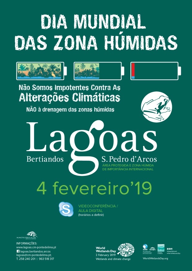 Tendo sido já iniciado, com o apoio dos técnicos do Serviço Área Protegida, um trabalho com os alunos do 3º ciclo, sobre o tema ‘Alterações Climáticas’, com a atribuição de um subtema a cada um dos 4 agrupamentos de escolas, pretende-se, com esta aula digital interativa, via Skype, a partir da Área Protegida, dar a conhecer aos alunos envolvidos o valor ambiental das Lagoas de Ponte de Lima, um grande projeto de conservação da natureza, de construção social e desenvolvimento rural e territorial, bem como demonstrar a importância das Zonas Húmidas, à escala mundial, que nos ajudam a preparar, enfrentar e a reverter os impactos causados pelas alterações climáticas.