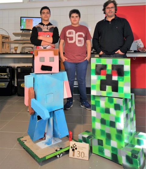 Este ano, o robô idealizado pelos alunos teve por base o popular jogo Minecraft Education. O jogo e personagem virtuais "ganharam vida". Todos os visitantes queriam tirar uma "selfie". Para além das fotos, os visitantes mostravam-se muito curiosos e queriam saber como tudo funcionava. Os alunos mostraram com entusiasmo o trabalho desenvolvido e explicaram os pormenores e as soluções inovadoras que desenvolveram. Para além dos robots, os alunos foram também o centro das atenções na "escrita 3D". Uma caneta com um sistema de aquecimento que atua sobre o plástico e que sai depois fundido na parte frontal, mereceu largas filas de espera para levarem o nome manuscrito em 3D.