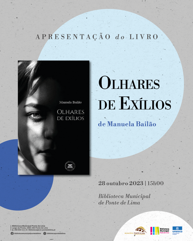 O Município de Ponte de Lima vai acolher o lançamento do livro “Olhares de Exílios”, de Manuela Bailão, no dia 28 de outubro de 2023, pelas 15h00, no auditório da Biblioteca Municipal de Ponte de Lima.