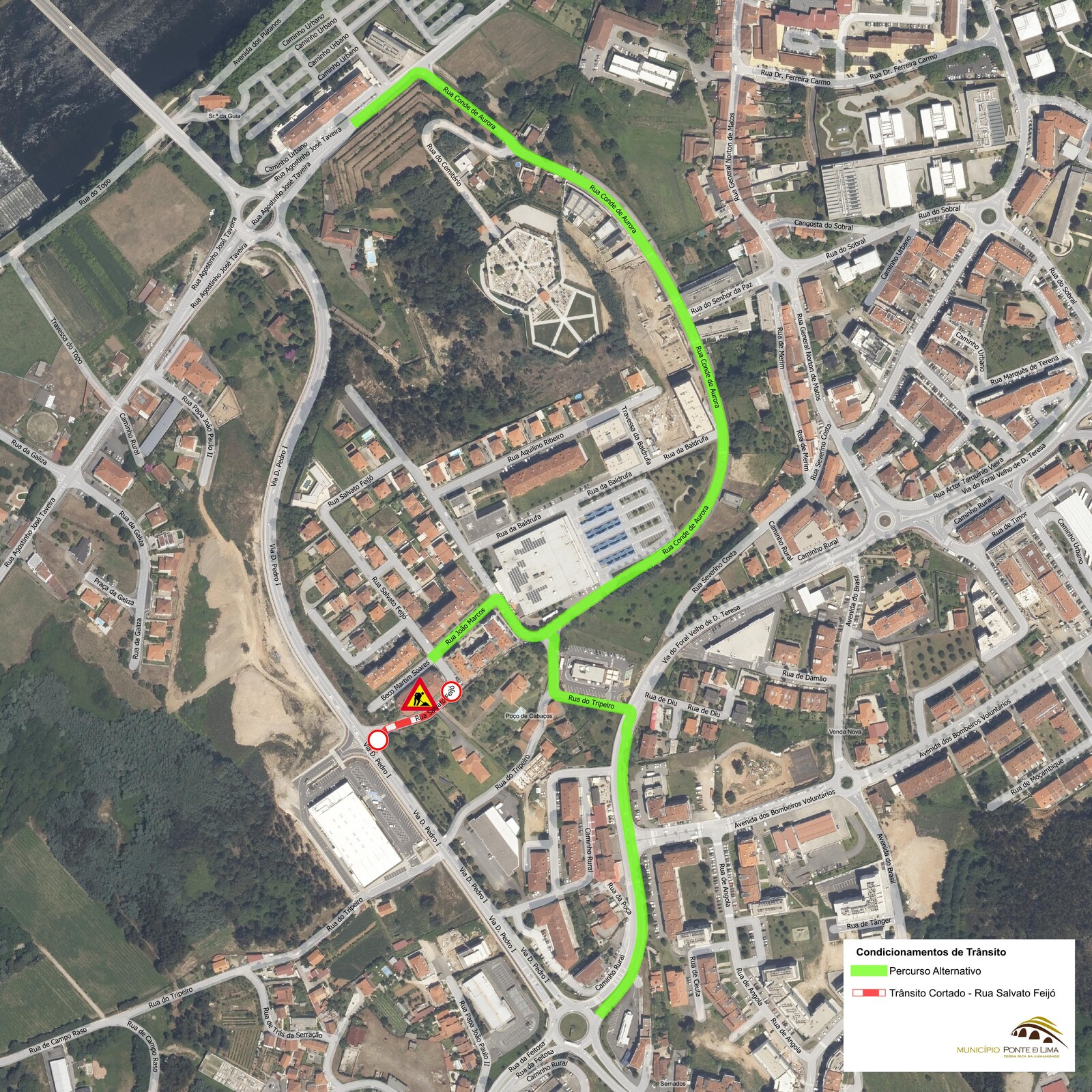 O Município de Ponte de Lima vem informar que, devido às obras de requalificação da Via D. Pedro I (EN 201), a rua Salvato Feijó se encontra cortada ao trânsito.