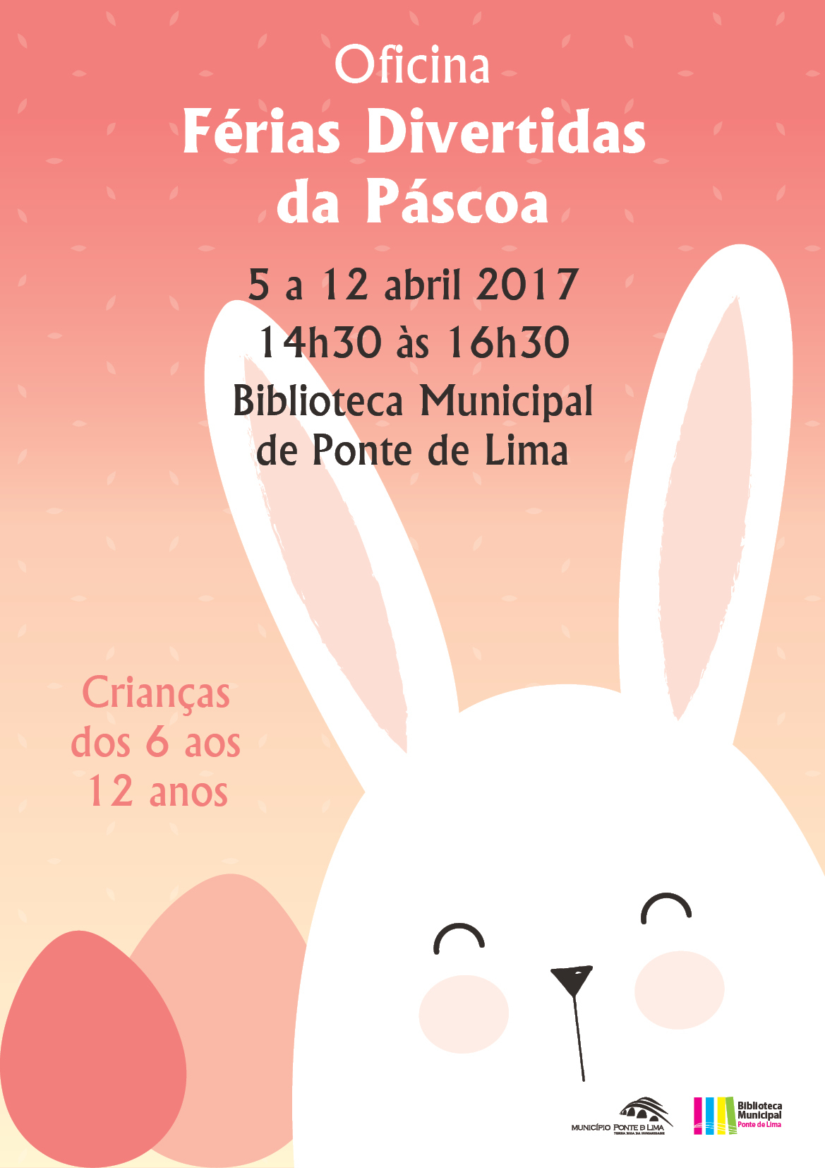 Na edição de 2017 das oficinas de Páscoa os livros dinamizados serão "O coelhinho branco" (5 de abril) e "O pinto careca" (6 de abril), estando também agendado um "Piquenique com histórias" e uma competitiva "Caça aos ovos da Páscoa" (11 de abril). As atividades encerram a 12 de abril com uma sessão especial de cinema. Ao sabor de umas doces pipocas, os mais pequenos poderão deliciar-se com o filme de animação "Upsss! Lá se foi a arca…".