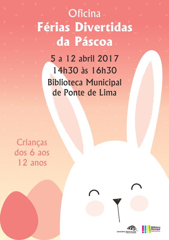 Em período de interrupção letiva, a Biblioteca Municipal de Ponte de Lima (BMPL) promove a oficina "Férias divertidas da Páscoa", iniciativa pensada para o público infantil e dinamizada de 5 a 12 de abril, entre as 14h30 e as 16h30. Este ano, as surpresas são muitas. Além das habituais horas do conto e dos ateliers de expressão criativa, os mais pequenos serão convidados a realizarem visitas culturais.
