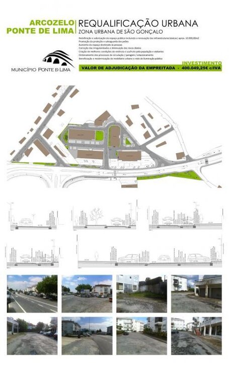 O Executivo Municipal de Ponte de Lima apresentou na passada sexta-feira, a Empreitada de "Requalificação da Zona Urbana de S. Gonçalo" em Arcozelo. A intervenção, numa área de 1 hectare, inclui a execução de passeios na EN201, uma via que atravessa a freguesia e que se encontra atualmente desarticulada com a condição de porta de entrada da vila mais antiga de Portugal.