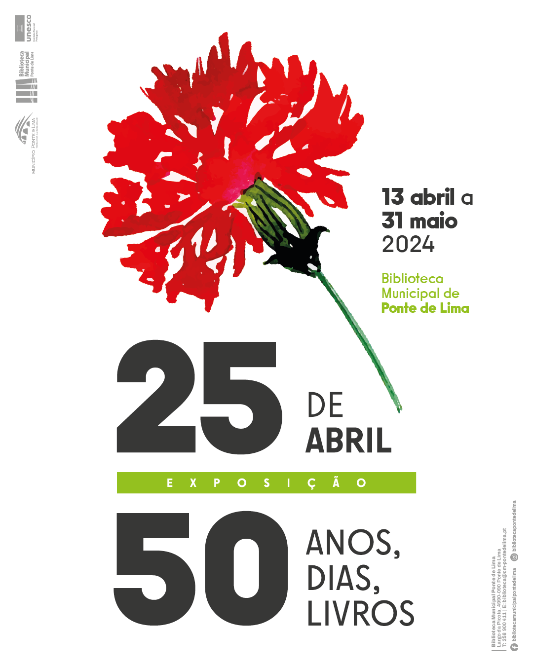 No mês da celebração dos 50 anos do 25 de Abril o Município de Ponte de Lima associa-se às comemorações com uma exposição intitulada “50 anos, 50 dias, 50 livros” que espelham meio século de liberdade e relembram esta data histórica que simboliza o início de um caminho de profundas transformações sociais, económicas e culturais.