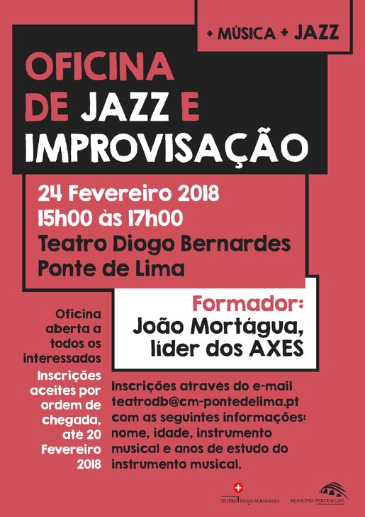 No próximo fim-de-semana, a 23 e a 24 de fevereiro, a partir das 21h30, o Teatro Diogo Bernardes, em Ponte de Lima, apresenta uma autêntica maratona do melhor jazz nacional com a participação de Pedro Neves Trio e The Nada na sexta-feira à noite e AP Quarteto e Axes, no sábado, também à noite, para além de uma Oficina de Jazz e Improvisação, gratuita, com o formador João Mortágua, líder dos Axes, na tarde de sábado para os interessados que efectuaram a devida inscrição atempadamente.