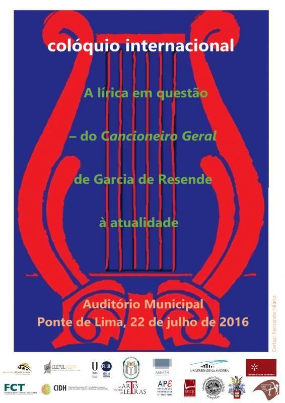 Realiza-se, amanhã, 22 de julho no Auditório Municipal de Ponte de Lima um colóquio internacional sob o mote "A lírica em questão - do Cancioneiro Geral de Garcia de Resende à atualidade", organizado pelo CLEPUL - Centro de Literaturas e Culturas Lusófonas e Europeias da Faculdade de Letras da Universidade de Lisboa - Pólo do Porto e pela Universidade Fernando Pessoa.