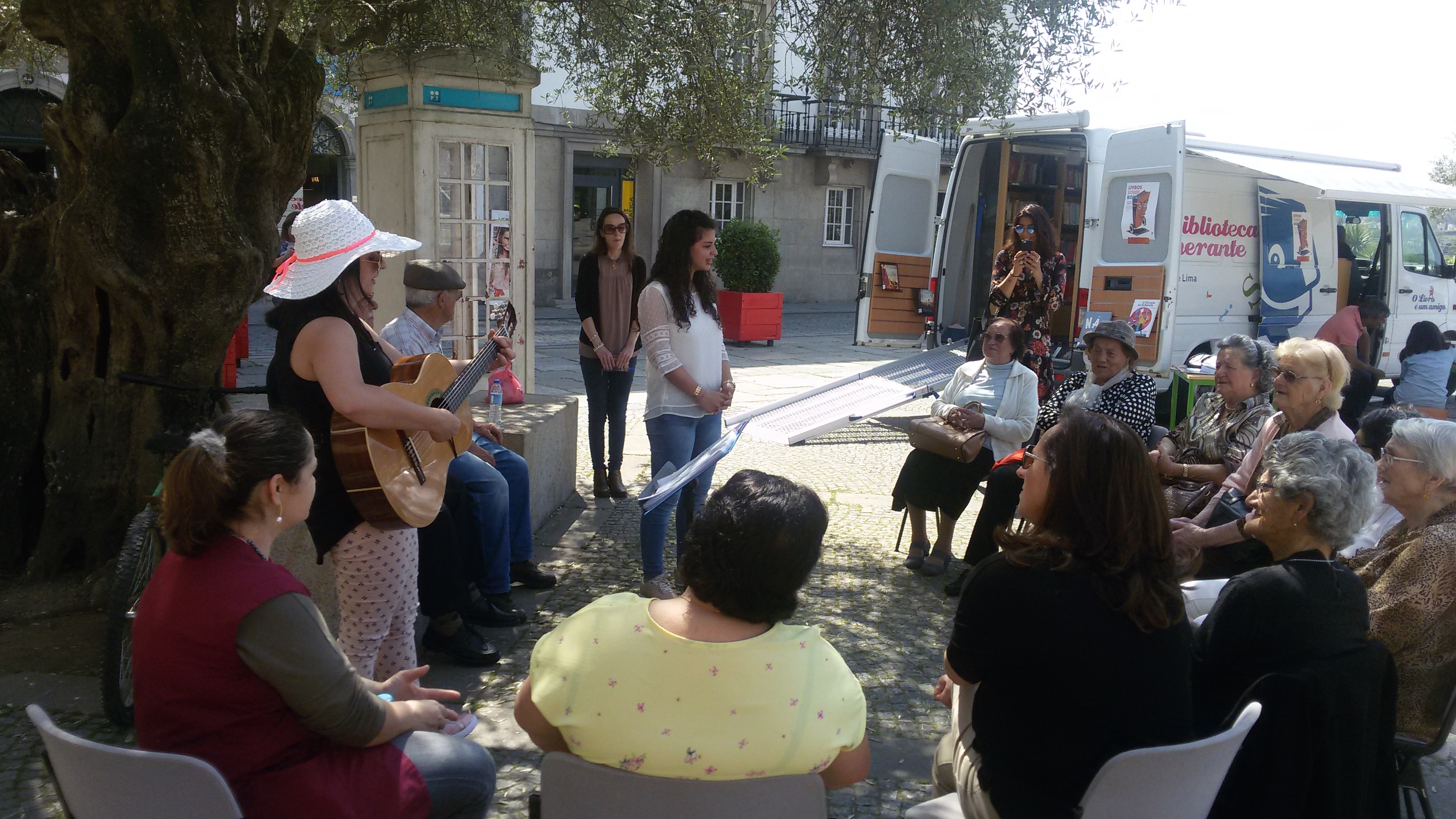 Este ano, no Largo de Camões, a população sénior do concelho foi o público privilegiado das celebrações do Dia Mundial do Livro. À sombra de uma oliveira, utentes do Centro Paroquial e Social de Santa Maria dos Anjos recordaram músicas tradicionais portuguesas – caso de "A minha saia velhinha" -, que entoadas ao som da viola, encheram este espaço de contagiante alegria. Entre canções, evocaram-se brincadeiras da infância – num jogo de partilha coletiva de memórias – e assistiu-se à leitura de "Os três conselhos", estória retirada da obra oitocentista "Contos tradicionais do povo português", de Teófilo Braga. Uma narrativa rica em ensinamentos que suscitou o debate em torno das lições a reter.