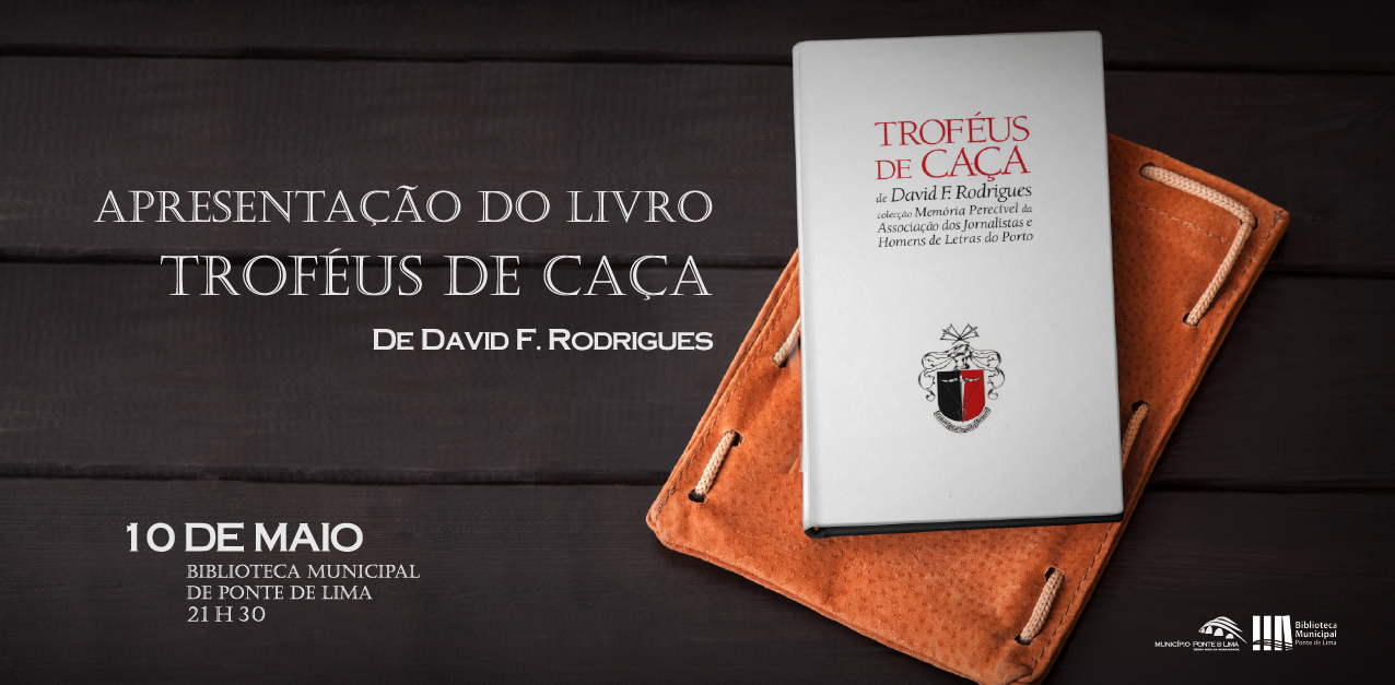 A narrativa ficcional “Troféus de Caça”, com prefácio do escritor João de Melo, reeditado pela Associação dos Jornalistas e Homens de Letras do Porto (AJHLP), será publicamente apresentado, no dia 10 de maio, às 21h30, na Biblioteca Municipal de Ponte de Lima (BMPL). A apresentação desta obra estará a cargo de Cláudio Lima.