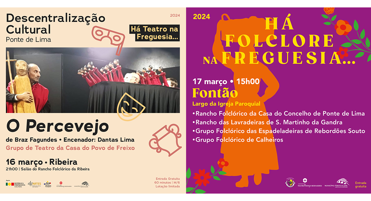 O Município de Ponte de Lima no âmbito do seu projeto de Descentralização Cultural, promove a rubrica Há Teatro na Freguesia… com o espetáculo "O Percevejo" de Braz Fagundes, do Grupo de Teatro da Casa do Povo de Freixo, no dia 16 de março, pelas 21h00, na freguesia de Ribeira, no Salão do Rancho Folclórico da Ribeira, com o intuito de continuar a fazer chegar às diferentes freguesias do concelho, as estruturas e criações artísticas produzidas no território concelhio.