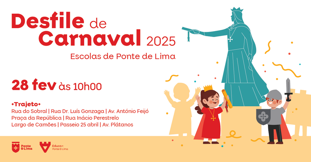 Este ano, imbuídos nas comemorações dos 900 anos da atribuição do foral a Ponte de Lima, por parte de D. Teresa, as várias Escolas do nosso concelho vão festejar o Carnaval, no próximo dia 28 de fevereiro, pelas 10h00, pelas principais artérias da nossa vila.