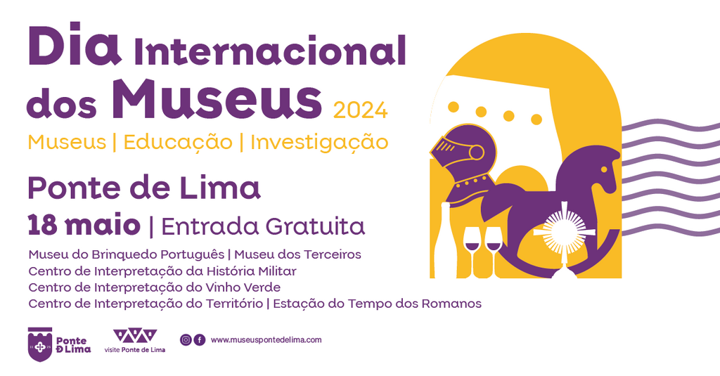 O Dia Internacional dos Museus é celebrado anualmente a 18 de maio e o Município de Ponte de Lima associa-se à comemoração desta data com entradas gratuitas nos museus da Rede de Ponte de Lima e com programas lúdico-culturais especiais para festejar esta efeméride.
