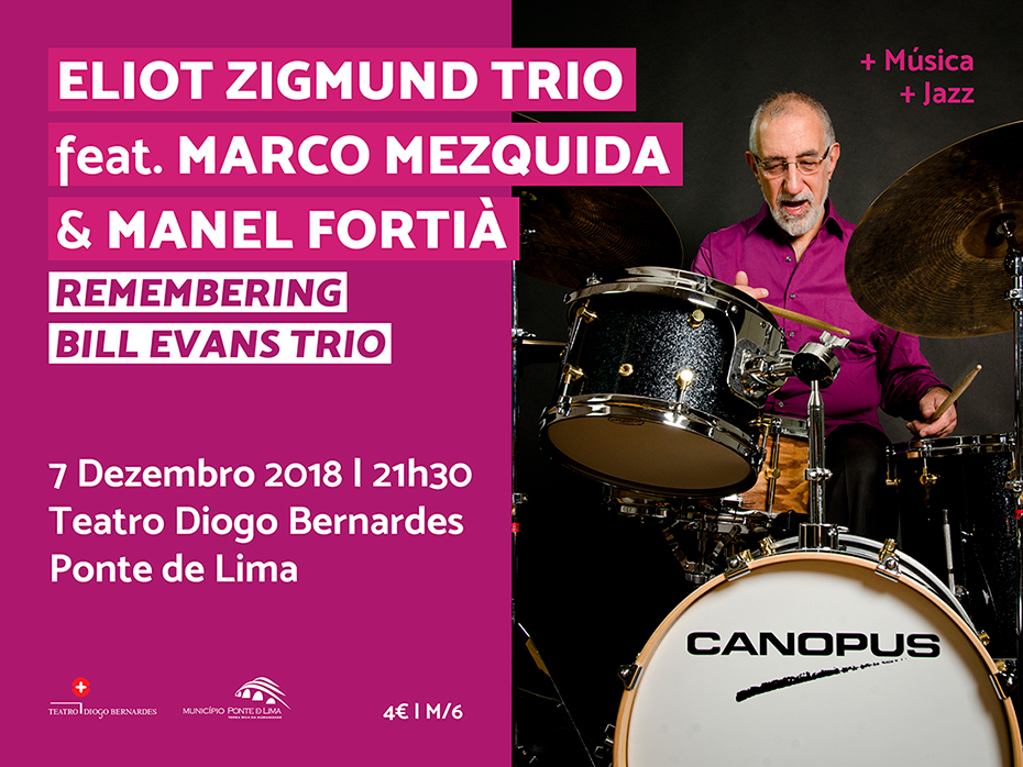- Eliot Zigmund Trio feat. Marco Mezquida & Manel Fortià: “Remembering Bill Evans Trio” | O baterista do famoso Bill Evans Trio, com 73 anos, toca em Ponte de Lima | 7 de dezembro – 21h30 – Teatro Diogo Bernardes – Ponte de Lima