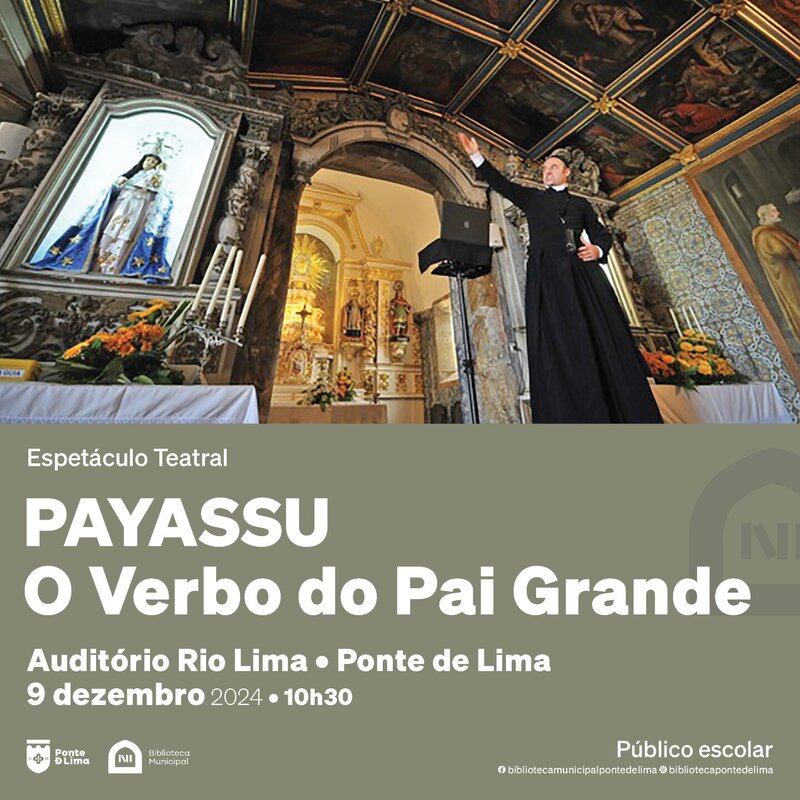 O Município de Ponte de Lima vai apostar na dinamização de um espetáculo teatral, baseado numa adaptação dos mais famosos textos da oratória sagrada portuguesa, o Sermão de Santo António aos Peixes, do Padre António Vieira, intitulado “PAYASSU - O Verbo do Pai Grande”, em palco pela Companhia de Teatro Lafontana – Formas Animadas de Vila do Conde, no dia 9 de dezembro de 2024, pelas 10h30, no auditório Rio Lima.