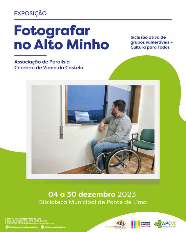 O Município de Ponte de Lima vai acolher a exposição itinerante de fotografia "Fotografar no Alto Minho - Inclusão ativa de grupos vulneráveis - Cultura para Todos", de 4 a 30 de dezembro de 2023 na Biblioteca Municipal.