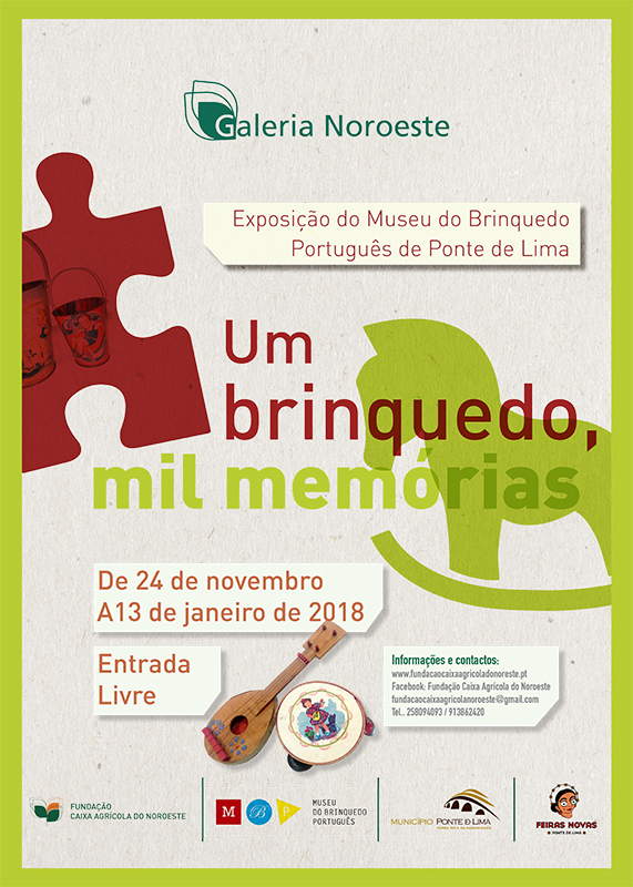 A Fundação Caixa Agrícola do Noroeste, em parceria com o Museu do Brinquedo Português de Ponte de Lima, organiza uma exposição intitulada “Um brinquedo, mil memórias”, de 24 de novembro de 2017 a 13 de janeiro de 2018, na Galeria Noroeste, sito na Rua de Aveiro, n.º119 R/c Esq.º, em Viana do Castelo.