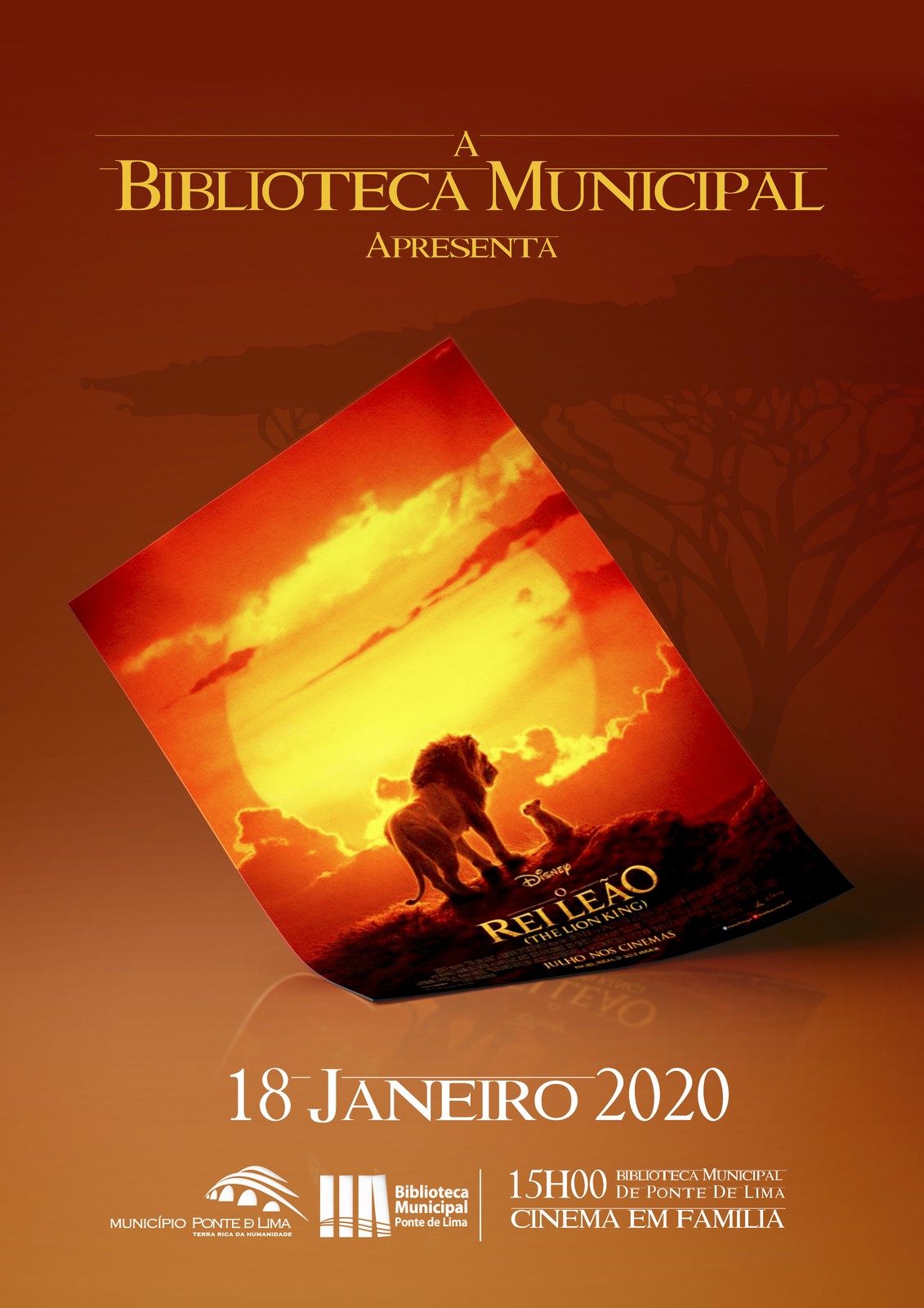 A próxima edição do Cinema em Família, agendada para 18 de Janeiro de 2020, pelas 15h00, a decorrer na Biblioteca Municipal de Ponte de Lima exibirá o grande filme “Rei Leão”. Depois do sucesso mundial de "Rei Leão", vencedor de dois Óscares em 1995, a Walt Disney Pictures e a Fairview Entertainment usam tecnologia de ponta para recriar a mesma história em versão "live-action". Regressa assim ao grande ecrã o destemido Simba que, com grande coragem e dignidade, reconquistou o trono do seu pai com a preciosa ajuda de Tímon e Pumba, os seus dois grandes amigos.