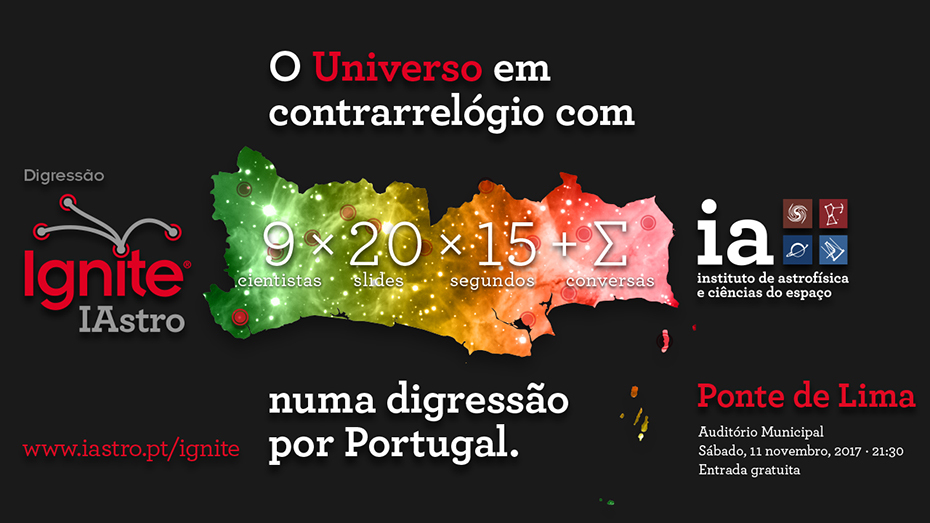 O Município de Ponte de Lima acolhe no próximo dia 11 de novembro, a digressão nacional “Ignite Astro, O Universo em contrarrelógio”, coordenada pelo Instituto de Astrofísica e Ciências do Espaço.