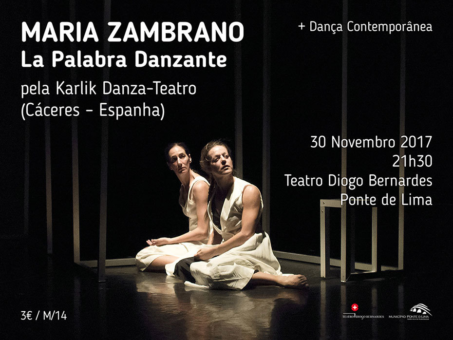 - Maria Zambrano: La Palabra Danzante, pela companhia Karlik Danza – Teatro | 30 de novembro – 21h30 – Teatro Diogo Bernardes