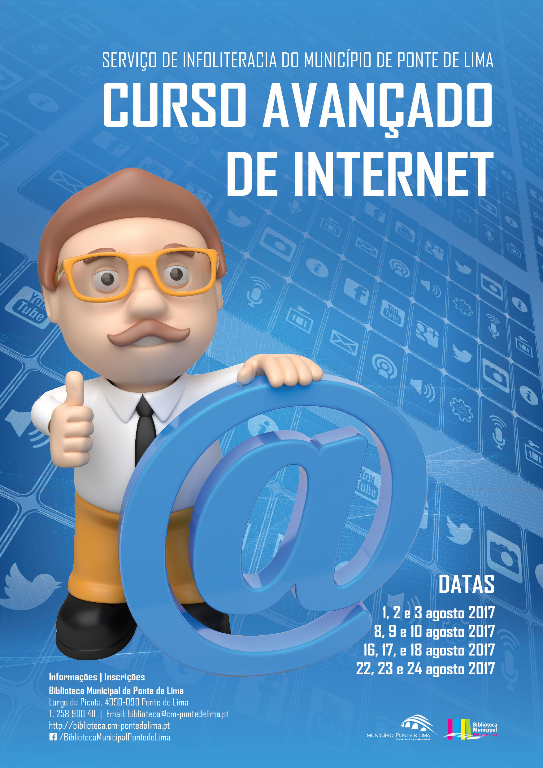 Após o sucesso alcançado nas edições anteriores, o Município de Ponte de Lima vai iniciar novas sessões de formação sobre Internet para adultos, nomeadamente, o “Curso Avançado de Internet” que surge no seguimento dos primeiros cursos básicos e intermédios já desenvolvidos anteriormente.