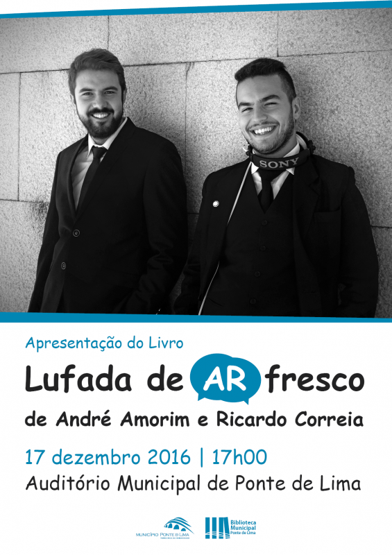 O Município de Ponte de Lima promove o lançamento de "Lufada de ar fresco", de André Amorim e Ricardo Correia, no próximo dia 17 de dezembro, pelas 17h00, no Auditório Municipal de Ponte de Lima.