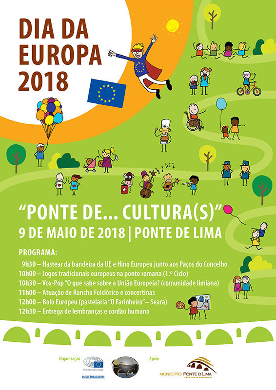 A iniciativa comemorativa do Dia da Europa “Ponte de… Cultura(s)” é organizada pelo Projeto Escola Embaixadora do Parlamento Europeu do Agrupamento de Escolas de Ponte de Lima em parceria com o Município de Ponte de Lima.