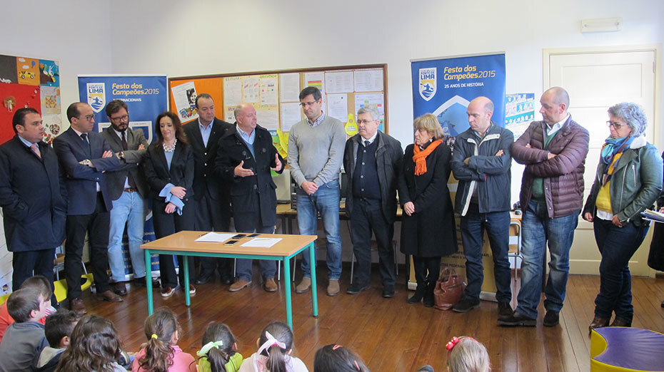 Esta cerimónia realizou-se no Centro Educativo da Ribeira, freguesia de onde é natural Fernando Pimenta, atleta do Clube Náutico de Ponte de Lima, campeão do mundo em K1 5000 e vice-campeão em K1 1000, resultados obtidos durante o ano 2017. O Presidente da Direção do Clube Náutico lembrou o palmarés de medalhas que o canoísta limiano já ganhou. João Carlos Gonçalves agradeceu ao Município de Ponte de Lima e a toda a comunidade escolar, considerando que “temos que melhorar a oferta educativa das escolas (…) este protocolo vai permitir aos alunos melhorar as vivências, experiências e o contacto com o maior recurso ecológico do concelho – o Rio Lima, local de trabalho de muitos atletas e onde se formam grandes campeões”, sustentou aquele dirigente.