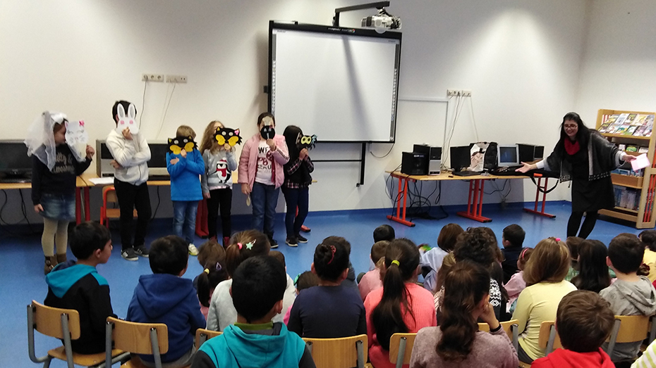 Através do projeto “Escutar, Ler … Imaginar e Aprender – A Biblioteca vai à escola”, a Biblioteca Municipal tem percorrido as várias instituições de ensino do concelho e tem dinamizado ações de promoção do livro e da leitura, baseadas na fruição e no lazer, utilizando outras linguagens benéficas ao serviço do livro, como a expressão dramática, a música e a dança.